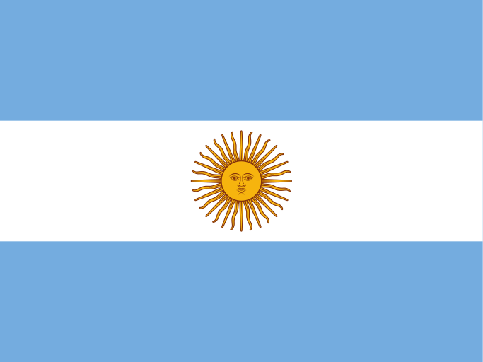 Created by Manuel Belgrano in 1812. The Sun of May was added in 1818. The shade of blue has been debated; currently a light sky blue is used.
