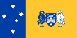 The flag of the Australian Capital Territory features blue and gold with the Southern Cross and the Australian coat of arms.