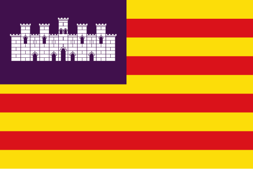 The flag of the Balearic Islands features the traditional Senyera with purple and a castle, representing the historic Kingdom of Majorca.