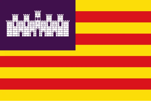 The core four red stripes on a golden-yellow background represent the common heritage shared with the Catalan Countries, a legacy of the Crown of Aragon. This pattern is a historic emblem of sovereignty and is deeply ingrained in the local culture. The addition of the purple castle in the canton is the key element that specifically identifies the flag as belonging to the Balearic Islands.