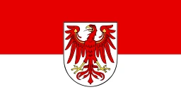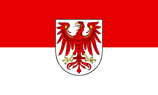 The flag of Brandenburg features red and white horizontal stripes with the red eagle, symbol of the Margraviate of Brandenburg.