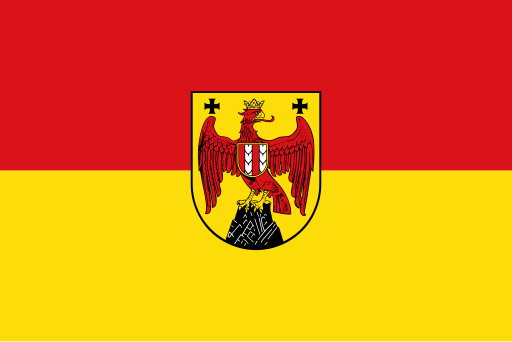 The flag of Burgenland features red and gold horizontal stripes with the coat of arms showing an eagle and castle tower.