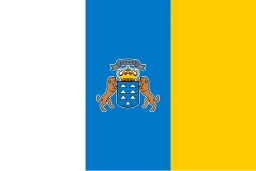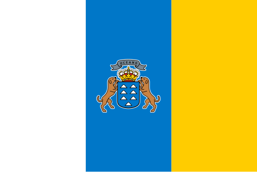 The flag of the Canary Islands features three vertical stripes of white, blue, and yellow, with the coat of arms in the center.