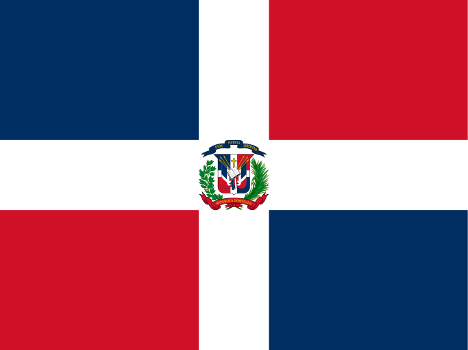Based on the Haitian flag (from whom it gained independence in 1844), but with a white cross added. It is the only flag with a Bible.