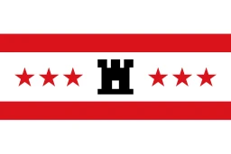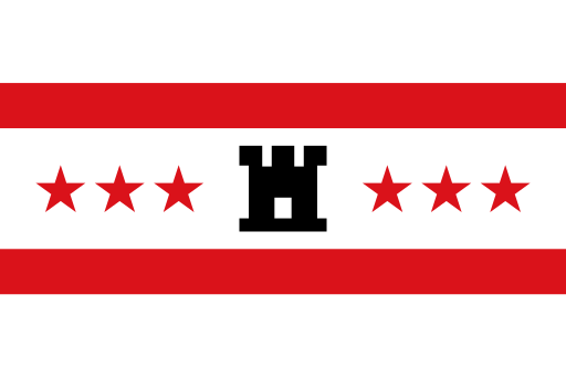 The flag of Drenthe features a white field with red castle and six stars, representing the historic six drostambten (districts).