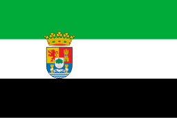 The flag of Extremadura features three horizontal stripes of green, white, and black, representing meadows, peace, and the land.