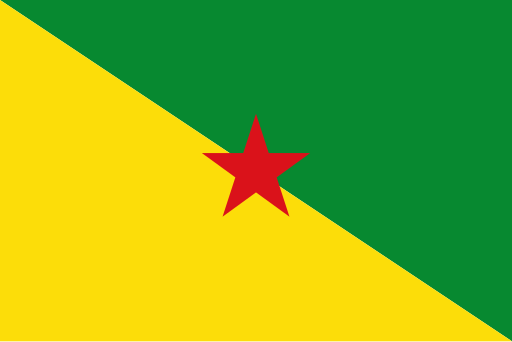 The flag of French Guiana features green, yellow, and red with a star, representing the department's Amazonian heritage and French connection.