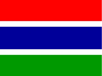 Red represents the sun shining over the country. Blue symbolizes the Gambia River, the vital artery that crosses the entire nation and gives it its name. Green represents agriculture and the fertility of the land. The narrow white stripes symbolize unity and peace among the peoples of Gambia.
