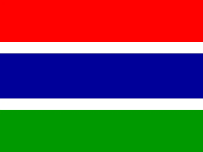 The green stripe at the bottom symbolizes the country's rich forests and its primary economic activity, agriculture. The two thin white stripes separating the three main colors are not merely decorative; they stand for peace, unity, and purity, reflecting the nation's desire for harmony and its hope for a bright future. Together, this color scheme paints a vivid picture of the Gambian environment and the values of its people.