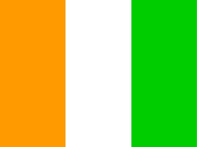 It is a mirror image of the Irish flag. The difference is that Ivory Coast has orange at the hoist while Ireland has green at the hoist.