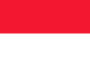 The flag of Monaco has official proportions of 4:5 (height to width). The design is divided into two equal horizontal bands, with the top band being red and the bottom band white. There are no additional symbols on the national flag. The precise shade of red is defined by law, distinct from the red used on the flag of Indonesia.