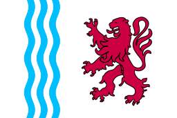 The flag of Nouvelle-Aquitaine is the official banner of the largest administrative region in France by area, created by the territorial reform of 2016. It is a distinctive horizontal tricolor featuring three bands of equal width in the colors red, white, and blue. The central white band is charged with the region's stylized logo, which is a modern graphic element rather than a traditional heraldic symbol.