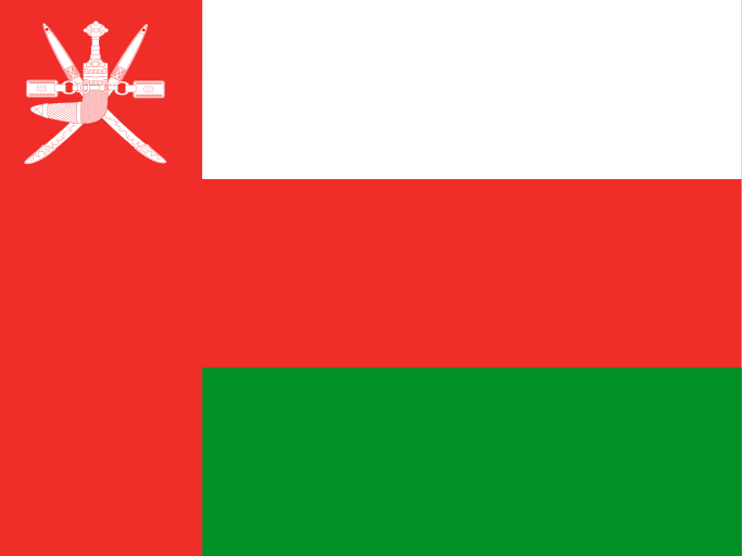 White represents peace and prosperity, red historic battles, green the Jebel Akhdar mountains. The national emblem shows two crossed swords and a dagger.