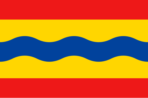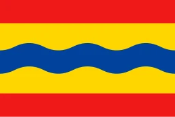 The flag of Overijssel features red, blue, and yellow wavy stripes representing the IJssel river, the province's namesake.