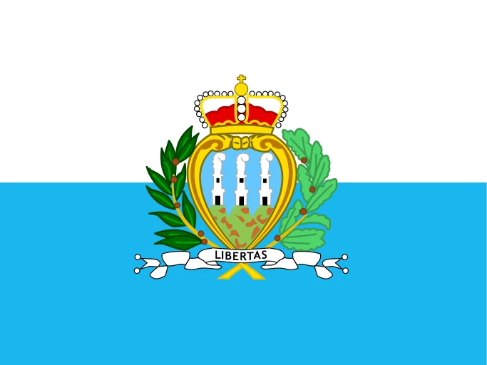 - San Marino's flag is one of only two national flags (the other being Haiti's) to feature a detailed, heraldic coat of arms as its primary charge without any other major design elements.