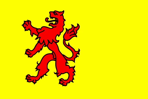 The flag of South Holland is a horizontal tricolor of yellow, red, and yellow. The central red stripe is twice the height of each yellow stripe, creating a distinctive and balanced visual proportion. This design is derived directly from the provincial coat of arms, which features a golden lion on a red field.