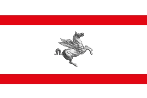 The silver Pegasus (often depicted as white) placed at the center is a modern addition symbolizing the region's cultural rebirth and artistic and intellectual aspirations. The winged horse, a figure from Greek mythology associated with poetry and inspiration, reflects Tuscany's immense contribution to art, literature, and humanist thought. The combination thus merges a symbol of historical political identity with one of enduring cultural excellence.