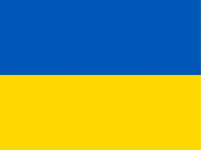 The national flag of Ukraine is a simple yet powerful bicolor design consisting of two equal horizontal bands. The top band is a vibrant sky blue, while the bottom band is a rich golden yellow. This blue-over-yellow arrangement is one of the most recognizable national symbols in Eastern Europe and is known for its stark, unadorned composition.