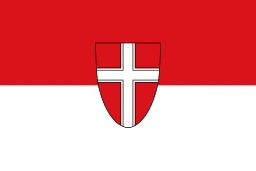 The flag of Vienna features red and white horizontal stripes with the cross of Vienna, representing the city's medieval charter.