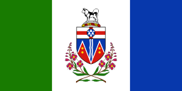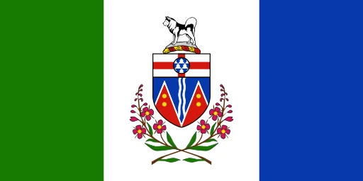 The colors of the flag carry specific symbolism tied to Yukon's landscape and identity. The green panel represents the territory's vast forests, while the blue symbolizes its lakes and rivers. The central white stripe evokes the Arctic snow that blankets the region for much of the year.